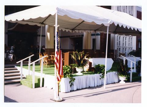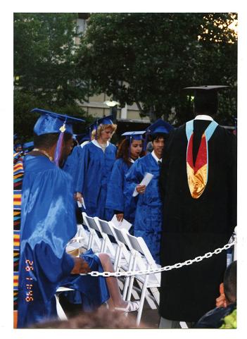 卒業式は何と、夕方6:30からの開式。これも日本とは大違い。そのうえ会場は広い芝生敷きの中庭でのこと。ほとんど雨の心配をしなくていいんだ。