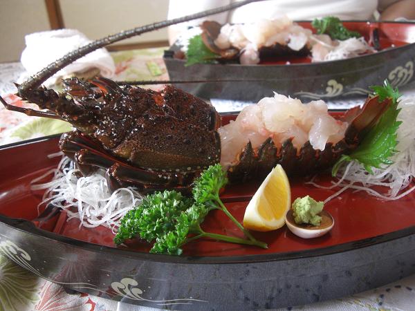 それより気になっていたのが、参道入り口の民宿に「伊勢海老料理」と大書してある看板に弘子ちゃんの目は釘づけ。お参りの帰りにここに寄らないことには、次なる青島には行きそうにありません。