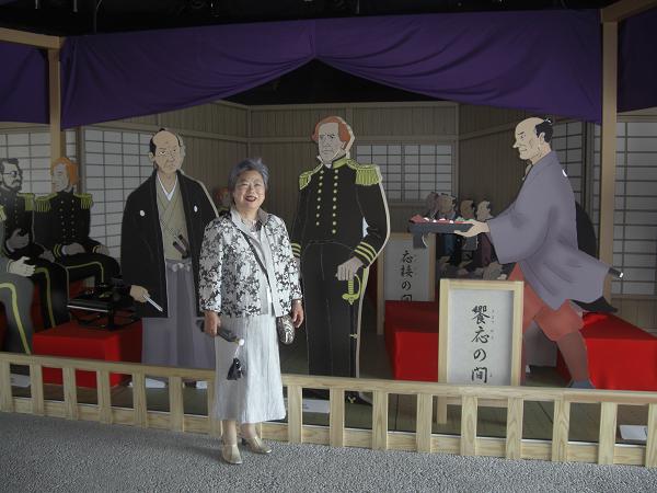 等身大の小村寿太郎写真は意外と小柄で華奢な姿でした。しかし、その風格たるやロシアを相手に一歩も引かなかった気骨を表したものでした。