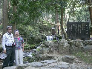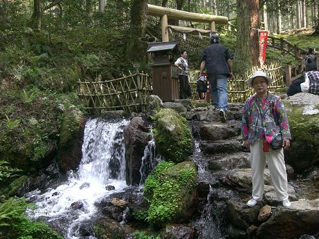 写真のように、清冽な雰囲気の境内、名水公園も整備された奥に、滝とは言い難い落差をみせる水音があった。弘子ちゃんと、こればかりの落差で滝とは言えないなどと言いながら水源を覗き込むと、これが滾々と湧き出る泉。常に11.7度という冷たさで、冷やすつもりの瓜があまりの冷たさに割れてしまったところから、瓜割りの滝と命名されたとか。手を浸してみるに言葉どうりの冷たさ。心地よさ。