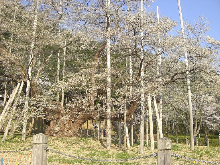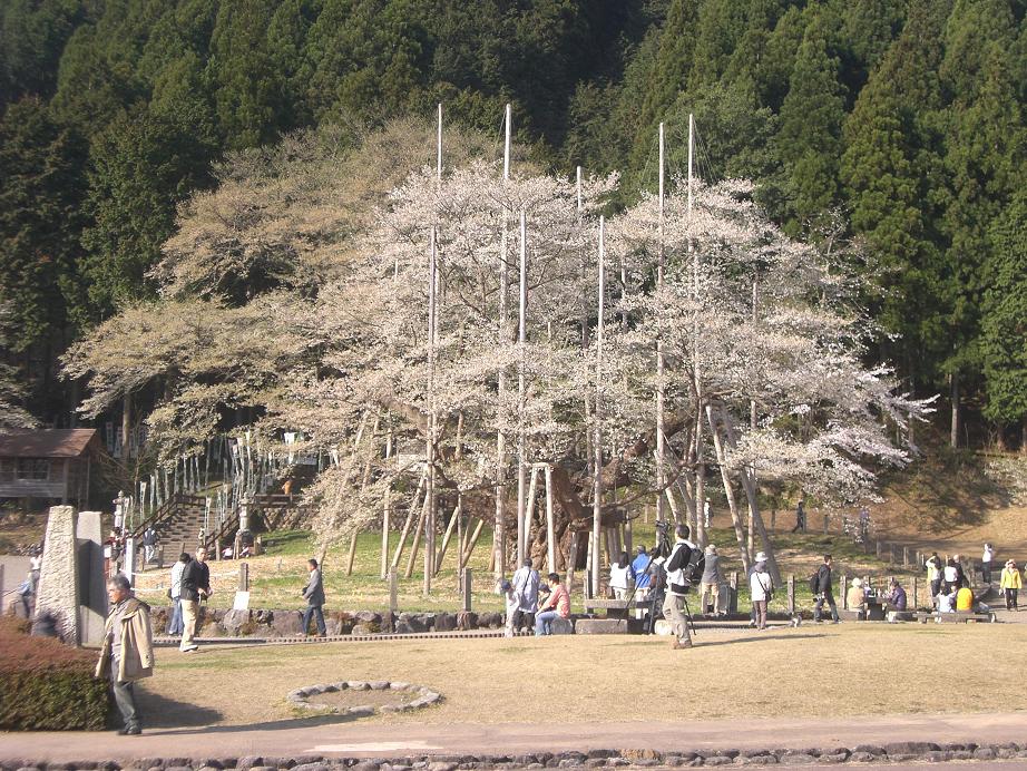 去年日本三大桜のうち、福島県田村郡三春の三春滝桜(樹齢千年・枝垂れエドヒガン)を訪れた時には残念ながら若葉が青々として空振り。山高神代桜は山梨県と遠くてすぐには行けない。残るは根尾の淡墨桜(樹齢千五百年・彼岸桜の一種)しかありません。