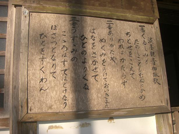 それから1500年、一所から動きもせず世の転変を見つめ続けてきたんだ。その心は淡墨観音の御詠歌の一節に歌われています。