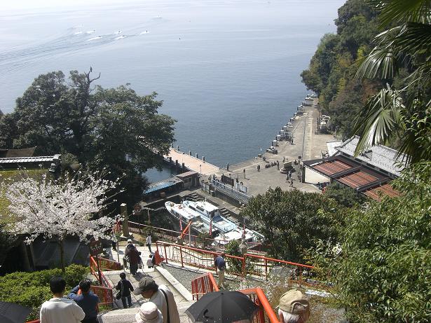 岩壁にあるお土産屋も7軒ばかり、160段の石段を上り詰めた先に宝厳寺がありなかなかのにぎわい。どうやら長浜からやってきた人々らしい。納経に時間を取られる。なにしろ島に居られるのは70分程度。