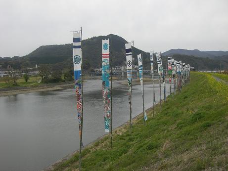 R321・通称サニーロードを宿毛へ。竜串の名勝も横目でにらんで内陸周りの道28号をたどり小築紫でR321へ戻った。松田川をわたり宿毛市街へ。39番延光寺は中村いや四万十市からのR56沿いにあるので少し逆戻り。またまた渡った松田川には端午の節句に飾る幟が数十本土手沿いに翻っていた。菜の花畑の黄色に映えて美しい。