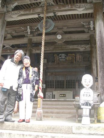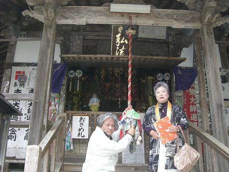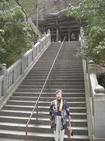 お遍路の苦労話、もちろん歩きと比べれば屁でもありませんが、今回の一番は45番・44番と逆参りした海岸寺への道順が、道路表示の不備から、とんでもない遠回りとなったことと、やっと着いた海岸寺の参道が半端じゃない階段数と険しさ。おまけに44番大宝寺への入口を間違えて、弘子ちゃんの言うとおりに入った参道がどうみても林道で、途中から断崖絶壁で道幅も狭くなるばかり。さすがにおかしいことに気がついて、ぎりぎりユーターンして引き返し事なきを得た。