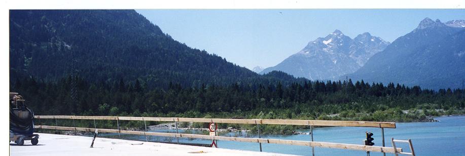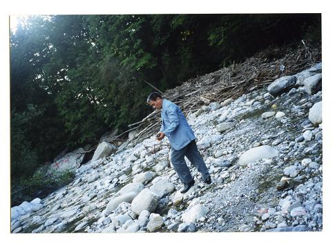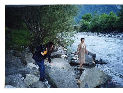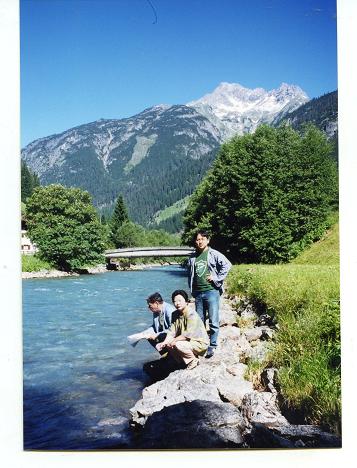 この峠からR200をひた走る。両側は2500mを超すアルプスの山々が連なり、標高1000メートルの峡谷を川沿いに上ってゆく。川の流れが右に左に変化し、河原の広い所を選んでは、流れに手を浸してみる。