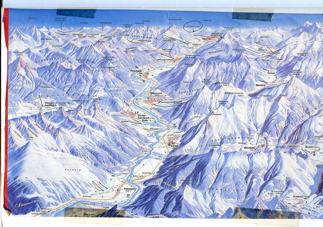 このあと記録している地名の列挙になるが、WARTH-(R198)-LECHTAL-PRENTEN-STEEG-HAGERAU-STOCKACH-BACH-EIMEN-STANZACH-LECHASCHAU-REUTTE-BAD-(R179)-ここまでTIROL-ここよりBAYERN-(R7)-(R310)-FUSSEN