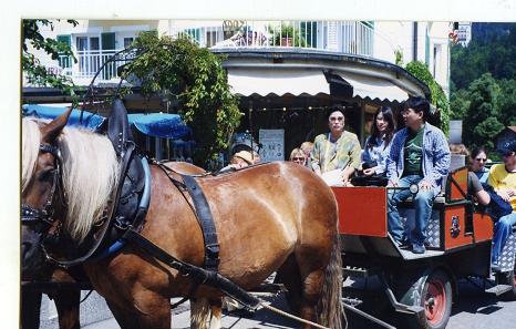 写真のように2頭立ての馬車に揺られてノンビリ見えるが、出発直後右のお馬さんのウンチとオナラ攻撃には閉口。それも馬力むきの頑丈な馬体ときて迫力満点。目を丸くして歓声を挙げたことでした。