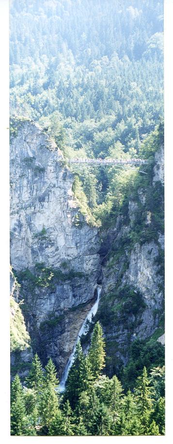 下の写真のうち縦長の写真の上3分の一あたりにうっすら見えるのが、ベラード峡谷に架かるマリエン橋で、このお城を眺めるベストポイントと言われており、見物客が鈴なりになっている。