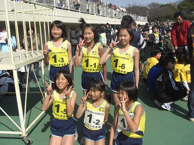 駅伝形式の中距離競走の大会が望まれるとの返事がかえってきました。最初は5・6年生に限り、駅伝グループのみとしておりましたが、その後参加対象を3-6年としたことや、駅伝のほかに自由参加のタイムトライヤルを男女別、学年別で付け加えたことから、年々参加者は増え続け、去年1200人、今年1400余人もの規模にまでなりました。