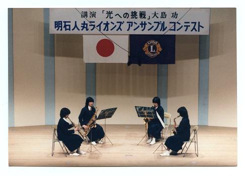 いまから思えば、ほんの思いつきから始まったコンテスト。その当時市内中・高ブラスバンドもようやく急成長の軌道に乗り始めていた頃。プレーヤーもバンドレベルより、各人の技量を磨かねば、これ以上の成長が見込めないところまでレベルアップしてきまし。そこで当時所属していた明石人丸ライオンズクラブの事業担当・第3副会長の地位を悪用して、最小演奏単位である2重奏からのアンサンブル・コンテストを企画した。協力者は明石北高校音楽部の松井隆司先生で全日本コンクールへの出場を果たしていた実力者。彼とは、彼が明石付属中のブラバンでトランペットを吹いていた頃からのお付き合い。開催エンジンの明石吹奏楽連盟理事長は例の山手照夫大師匠。ことはトントンと進み、とりあえずは明石市民会館中ホールを使ってこじんまりやろうとなった。しかし、当時70万くらいの予算は有ったと記憶しています。