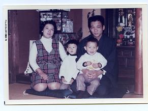 1974(49年)お正月の写真には、もう茶目っ気に走っている長男がひんがら目をしておどけ、次男が親父の膝を独占して悦に入っている。その傍らのしんどそうな顔付きの弘子ちゃんは、この17日後の1月18日に三男を産んだのだから、臨月もいいところだ。