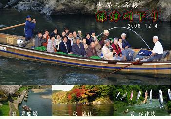 確か、保津川下りの3分の1くらい下った、トロッコ駅から降りられる岩場。それもちょうど船が真横にその前を通り、流れもゆったりとした絶好の場所に、カメラマンがたった一人、カメラを構えてスタンバイして、我々の船をパチリと写しておりました。それも船頭さんも声を揃えて「ハイ、チーズ」ときた。