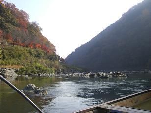 香嵐渓を狂乱渓と書いたごとく、モミジより、人々の狂乱ぶりの方が印象に残って、消化不良となっていた今年の紅葉狩りを完結させるべく、急遽、保津川下り・トロッコ列車を計画した次第です。