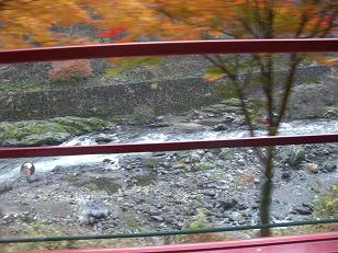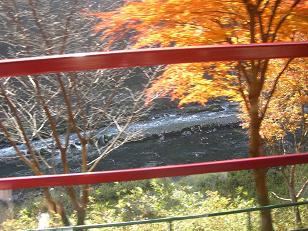 嵐山・渡月橋の辺りまでは、時々迷い込んだことはありましたが、この保津川下りの終点・船着場としての嵐山を意識したことはありませんでした。例によって弘子ちゃんの暗示・マジックに操られ、まだ紅葉まにあうかしらと、もういく気にされちゃった。明日の泊とて、京都市内にはろくな宿が残っている筈がない。先般から、天下の名所を訪ねる際の秘訣は、朝一番にその名所に行っていること。その学習を生かすために、保津川下り乗船場に朝一に行ける宿を探す。温泉場としては、瑠璃渓温泉・篭坊温泉などがヒットしたが、たまたま湯の花温泉を三十三所巡りで穴太寺詣りの際、亀岡ICで看板を見て覚えていた。