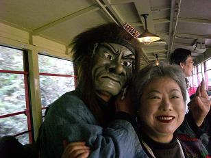 列車車掌がのっけから懇節丁寧にガイドしてくれて、いまやトロッコの名物となっております。途中駅からは大江山の鬼さんの乱入もあり、写真ポイントでは列車を止めてサービスに勤める。これでなくてはいけません。