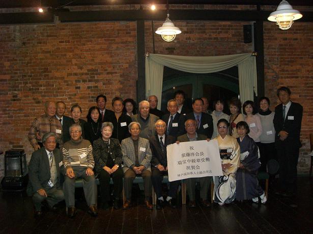 11月第4金曜日は恒例の神戸高知県人土陽会忘年会です。今年は懇親会に加えて、須藤淳会長の瑞宝中綬章受勲のお祝いを共に開催されました。会場はこの5・6年いやもっとハーバーランドくらくらにて。