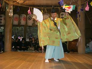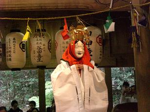 一昨年大阪ドーンセンターでの公演を紙上で見つけて駆け付けた。その時は、農村芸能の一つとして、一部の抜粋が演じられたのと、舞台の上という雰囲気の違いから、余計に現地での奉納を見てみたいという思いが強くなってまいりました。その会のアンケートに是非現地ツアーがあれば参加すると書き込んだことでした。