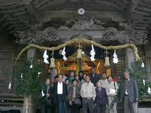 参加者は、我が3兄妹夫婦3組と前に「メモリアル・ジャーニー」(神戸高知県人土陽会会報掲載)の時、同行した親父の9人兄弟の末妹・茂子ばあさん91歳と、当日須崎の本家から従姉弟が5人、上分から従兄弟夫婦と梼原在住の嫁の従姉妹夫婦の計16名の大集団となった。これもご先祖さまのお導きなのかも知れない。だって須崎は梼原から56Kばあのところに居ながら皆さんこの御神楽を見た事はないとのことだ。津野であるとの認識が足りないんだ。
