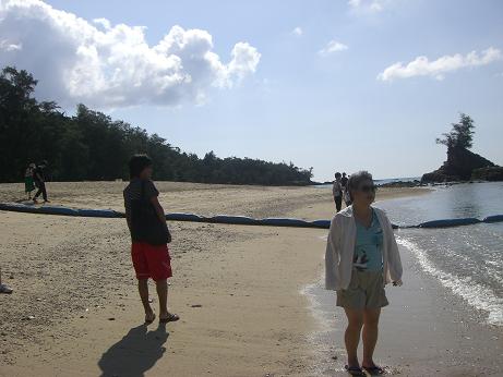 チェックINが7:30ごろだった。レストラン神着に8:30の予約を入れて一休み。目の前には漆黒の海が広がる。・・・神着での食事は沖縄料理を主にチョイス。4人が珍しい料理をつつき合う。これがまた美味しいんだ。