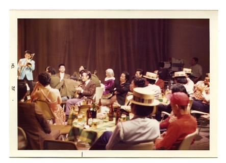 森・本木氏が昭和23年卒で伊藤さんが27年卒。そして忘れちゃあいけない、日本のマイルス・デビスとの呼び名で有名なJAZZペットの片岡学鯰学舎(高級料亭)主人にお願いして、音楽プロディユサーも兼ねて貰うという豪華なラインナップが纏まった。片岡氏は明石南高校卒で明石中学音楽部がマッカーサーの命令で、新制高校制となり、明石と明石南の両校に引き裂かれた際の一人であります。・・もちろん司会は末廣光夫御大