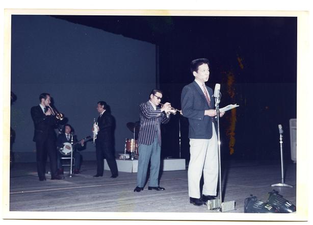 実は歌だけで舞台に上がったのは後にも先にもこの時限りだが、ターヤン・ナッカンのプロとニューオリンズ・ラスカルズの名トロンボーン福田氏、NHKのプロデュサー・クラの福家氏と関西TOPの実力者を揃えたアンバサダーと南里文雄師匠のステージで南里文雄作曲の「限りなき愛情」を歌うはめになっちゃった。南里先生と奥さまとの純愛は映画になったぐらいで、その映画のテーマ曲ではなかったかな。とくに南里先生が失明してからの奥さまの献身的お世話は、それこそ限りなき愛情と言える。先生に、失明の原因を恐る恐る尋ねてみると、いともアッサリト、麻雀のやりすぎだったとの返事。不遇を託った際にのめり込んだ麻雀のせいだったんだ。