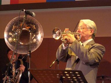 ハッピーデキシーばかりだから飽いちゃうんだ。本来デキシーは葬列を導く音楽隊で、天国に召された身近な人を往きは、惜別の情を込めてマイナーで、帰りは天国に召されたことの喜びをハッピーに演奏したものなんだ。ふと横を見ると、娘より若い、といってもOVER50のチョイトベッピンを連れた77歳のDOCTORの指先がリズムを取っている。かしこまって座っている姿で楽しんでるんだと微笑ましい。