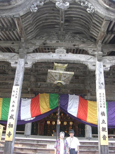 二十九番松尾寺を先にお参りして、再び高速道に戻り、天の橋立ICへと急ぐ。約九十分で成相山登り口に到着した。なんとか納経できる時刻に間に合った。R176から割と地味な案内板があって(国分交差点)国分寺跡の表示を右に見て、狭い山道を文字道理駆け上がる。お寺の料金所手前の3折の坂はかなりの急こう配。