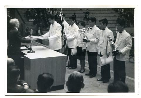 一方、コンクールは指揮者が一年上級の阪大生・青山正氏のもと、自由曲・序曲「ウイーンの朝昼晩」(スッぺ作曲)を引っ提げて参加。昭和38年(1963年)11月10日岐阜市民センターでの大会で余裕で見事優勝を飾った。