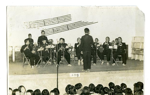 といっても、全員で合奏できるのは、その当時ブラバンの定番曲であった、「錨を上げて」・「士官候補生」等せいぜい10曲ほどのレパートリーしかありませんでした。そんな状態なのにずうずうしく、明石デパートのホールでの演奏会に出てたんだ。たしかに首を傾げて吹いている。