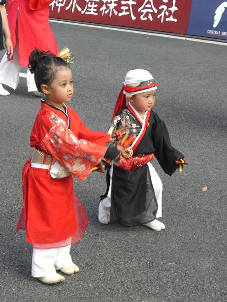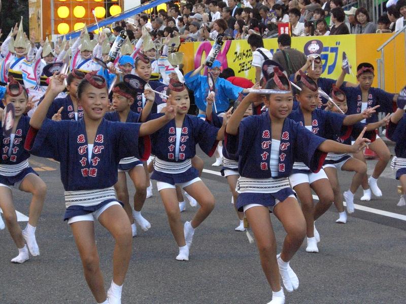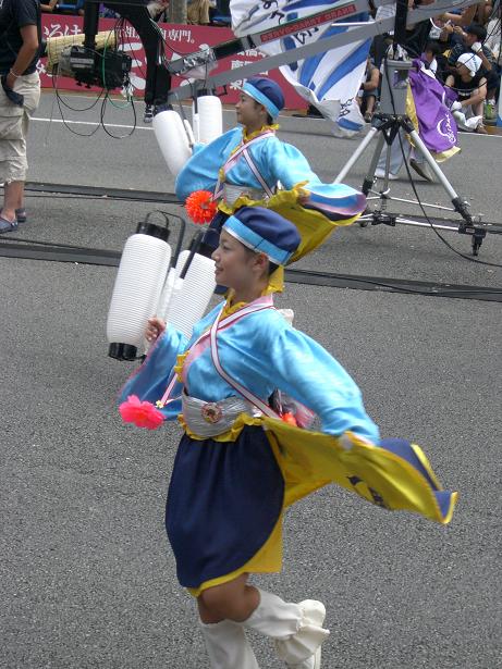 音曲に関しては、ロック調一色でどれと言って印象に残るものがありません。傾向としては、和太鼓を多用した、地方車上でのパフォーマンスはそれなりの効果をみせておりました。一時サンバ調が流行ったことをおもいだして、次はどう変化していくのかと考えますと、もっと音楽としての多様性がでてきても良いんではとかんがえます。もっと鮮明・重厚な音。クラッシック・JAZZ・フュ―ジョン・和調・マーチ風等、もっと音楽性をたかめた音曲の登場が望まれます。それにしても、2列道路を分離帯を挟んだ距離で、地元連と全国大会出場の他県連が同時に練る光景は絢爛にして豪華の一語に尽きましょう。