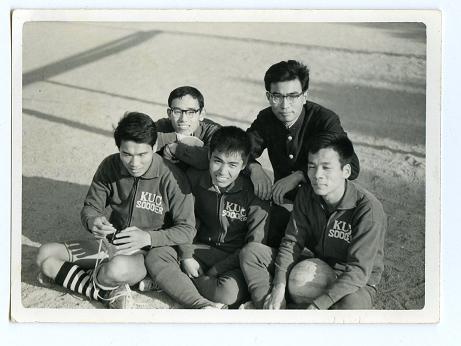 同じ35周年記念号P74に私の一年上のキャップテンだった松本靖弘先輩が『こころのイレブン』と題して一文を寄せておられる。田中教授の退官を惜しむとともに、当時の現役の有様に触れ一回生の時の京都合宿でのハードトレーニングを振り返り、現役への励ましの言葉を綴っておられる。そして、3回生のリーグ戦で念願の2部復帰を果たした歓びを最大最高のこととむすんでおられる。あの京都・西京極のグランドで阪大に2-0で快勝したあの日のことを。・・そう、多くの良き先輩に恵まれる中で、特に思い出に残る一人である松本靖弘センターフォワード。そのころ、何故か山陽電鉄・西舞子駅の近くに、石川家と呼び慣らしていた下宿家がありました。そこは謂わば、サッカー部御用達と言うか、代々引き継がれた梁山泊でありました。私が知っているだけでも谷本・堀川・松本・楠瀬・則・須藤・浜口・三枝などの名前がすぐさま思い浮かぶほど、サッカー部員がまるで、トグロを巻いているような、といっても家主の石川の伯母さんの統率の下、こざっぱりとした雰囲気の下宿であったことをおもいだします。私が1回生で入部早々、早速この下宿の、松本・楠瀬コンビからRIO・BRAZIL(親父経営の明石駅前の喫茶店)にいる私にご指名の電話が繋ってきた.。『明石駅前の未亡人サロンに飲みに来てるんだけど、お勘定が払えない助けてくれ。』その店の名前を聞くと、知り合いのヤクザ屋さん経営の誠にイカガワシイお店。そんな店で二人して、怖いもの知らずのドンチャン騒ぎをやらかしたらしい。少々の手持ちでは足りなくなること当たり前。「よーあんな店へ行くわ」と呆れ返りながらも、親父に寸借して駆けつけた。一つ間違えれば、ボコボコになるところであります。そんなことがキッカケで、好漢松本とのお付き合いが始まったわけだ。ところで、このムチャ者が、一度グランドに現れると、まるで人がちがったようなFWに変身する。中学・高校と岸和田で慣らしたもんやガ口癖だった。小柄な身体ながら、ダッシュの最初の5歩の出足の早いこと。身体を張ってのドリブル。そして火の出るような鋭いシュートと謂わば根っからのストライカーに生まれてきたような男であります。入る大学を間違えたんじゃないのかと疑りたくなるような代物です。といいながら彼からは、代々部に伝わる授業のノート、それもここ数年の試験問題まで付記してある優れものを譲り受けたり、当時珍しかったYASUDAの注文シューズの注文書を貰ったり、こまめにお世話いただきました。そんな松本ちゃんを擁した私が2回生のリーグ戦。3勝2分とリーグ戦を勝ち抜いて優勝し、いよいよ念願の2部復帰(決して昇格とは言わない。あくまでも2部に帰るのであります。)のための最終関門である大阪大との入れ替え戦。確か一戦で引き分けての再戦が京都・京極のグランドでありました。その試合で、勝利を決定付ける2点目。それもセンターサークルの辺りから私が思わず一蹴した玉が運良くGOALのBARの下を掠めて入っちゃた。一瞬何が起こったのか誰もがあっけにとられて佇む中、応援に駆けつけておられた桑畑芳郎先輩が両手を広げてグランドを突ききって駆け寄り、ようやったようやったと私を押し倒して、感涙の抱擁とKISSのプレゼント。おもえばあれが男性を知り初めし最初となるのか。