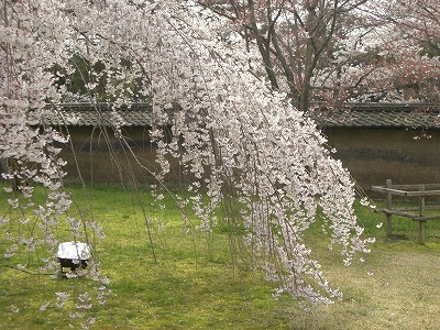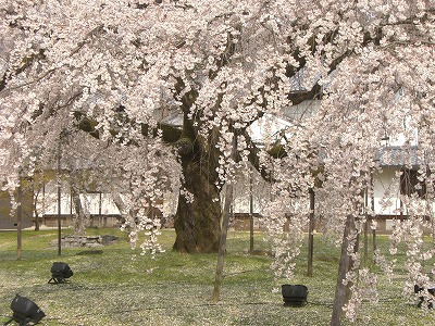 開創後、醍醐、朱雀、村上の三帝の深い帰依によって、次々に堂塔が建立され、天暦5(951)年には五重塔が完成。山上山下のまたがる大伽藍が整ったといわれている。・・その秀吉が醍醐の花見に際して、翌年の花見のためにもと秀吉自らが基本設計をおこなったのが三法院庭園である。作庭は4月ころから始められ、その年の8月に秀吉が死去したあとは義演の指導のもとで続けられた。作庭は義演が亡くなる1624年(元和10年)までの27年間にわたった。三宝院境内のしだれ櫻はとくに有名で天下の名石『藤戸石』とともに必見の名勝であります。・・そんな秀吉でさえ見ることがかなわなかった櫻の盛りを見るうちに、恩賜館展示の前大納言・中山愛親が記した醍醐山の名花という絵巻に目を奪われてしまった。櫻の其々の姿を描き、その微妙な差異を見過ごすことなく書き上げてある。其々に似つかわしい名前が添えられ、その名からだけでも、たたずまいが想像できる。その名を記すと・・・小さくら・紅の小桜・きさらき桜・かさねの小桜・糸さくら・単の伊勢・重の伊勢・青葉の山桜・三よし野・重の糸桜・赤紫の山桜・うばさくら・塩時・入相さくら・ひとえの江戸・地主・芳野・きりか谷・かさねの江戸・とらの尾桜・明ぼの桜・普賢象・しくれさくら・楊貴妃・奈良の八重桜・法輪寺・白のにほひ・樺さくら・ひとえの浅黄桜・廊間桜・常盤桜・重の浅黄・有明桜・重の有明桜・玉桜・・すこしは桜満開の情景が浮かんできましたか。