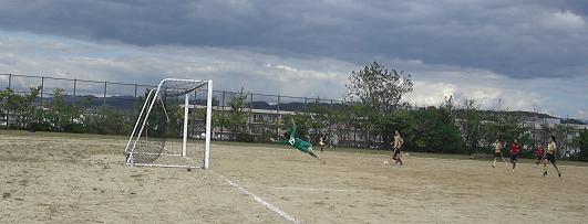 その執念が通じたのか順調に得点を重ね16-0で試合は終了。精華大のキャップテン(キーパー)が新田主将に挨拶に歩み寄っていた。8人での試合をよくぞ投げ出さないで続けてくれたものだ。改めてエールを贈ろう。